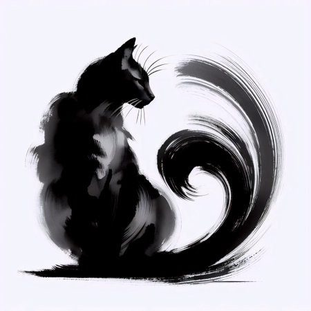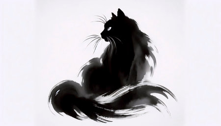 A minimalist sumi-e ink painting of a cat, Ai generated image