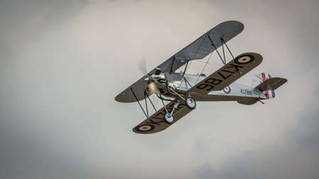 Biggleswade, UK - 7th May 2017: Vintage 1928 Hawker Tomtit biplane in flight