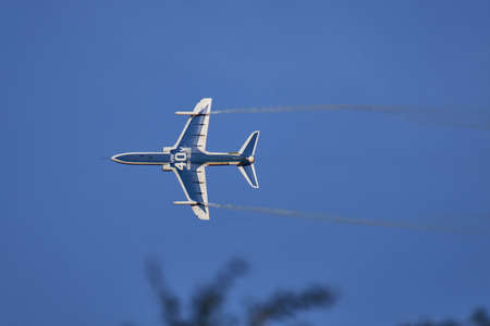 Helsinki, Finland - August 6, 2021: Midnight Hawks is a Finnish aerobatics team from the Finnish Air Force on Kaivopuisto Air Show