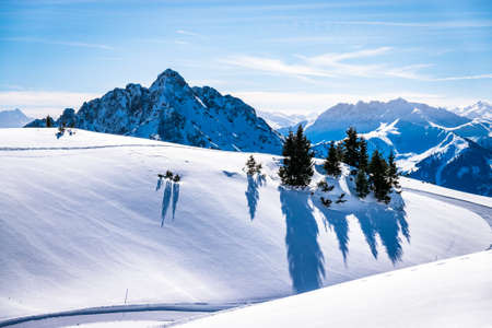 Mountains with snow in winter. Ski resort Soll, Tyrol, Austria