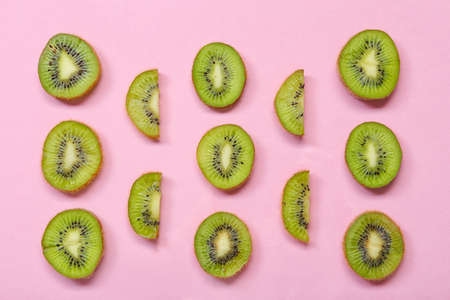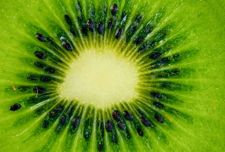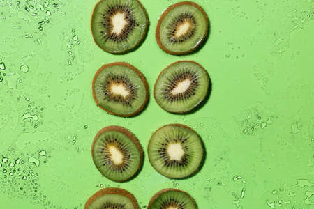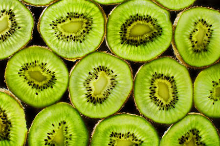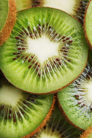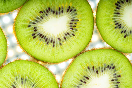 Kiwi fruit cut into slices, in full screen as a background. The concept of healthy and delicious food