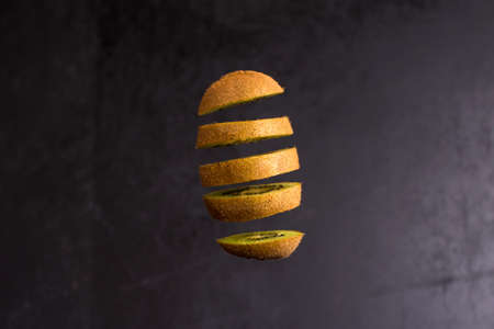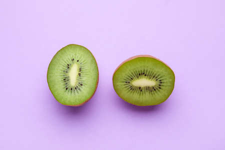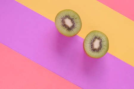 Slice Kiwi fruit isolated on colorful background for summer time with space for text.