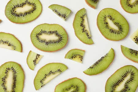 A pattern of fresh kiwi slices on a white background. The concept of fresh fruit.