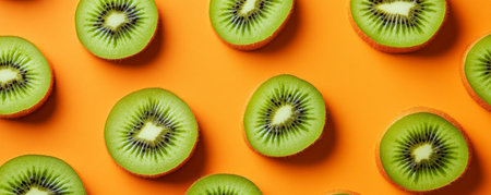 Kiwi slices on an orange background, vibrant and fresh. Healthy eating and fruit concept