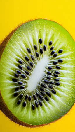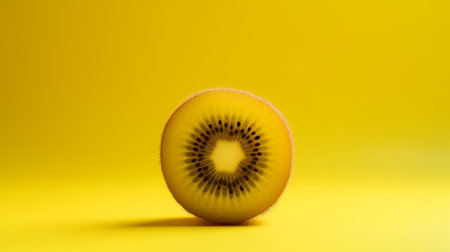 Vibrant Green Kiwi Fruit, Sliced to Reveal Juicy Interior, Isolated on Yellow Background