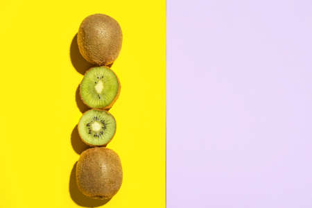 Fresh kiwi fruit on yellow background. Healthy food concept.