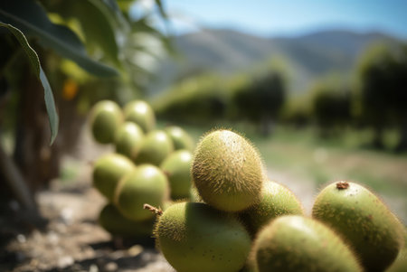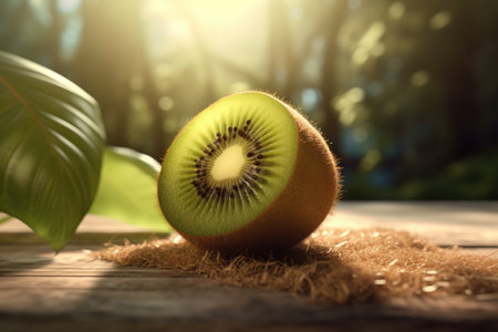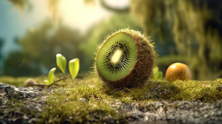 Kiwi fresh fruit in the landscape background. Generative AI art