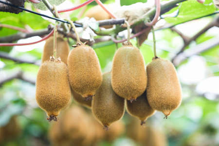 Kiwi fruit hanging on the vine in the garden, stock photo