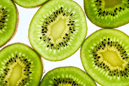 Ripe fresh kiwi fruits sliced as textured background, protein load.