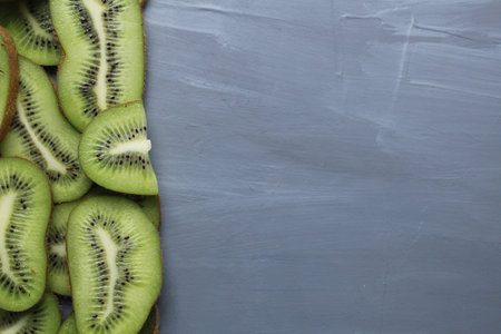 Kiwi Slices Background with free space for the text of the product photo. Concept of Consumption of Local Seasonal Kiwi Fruit Products.