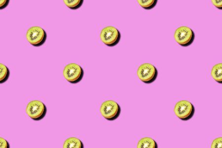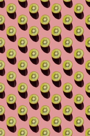 Many cut kiwi on color background. pattern for design