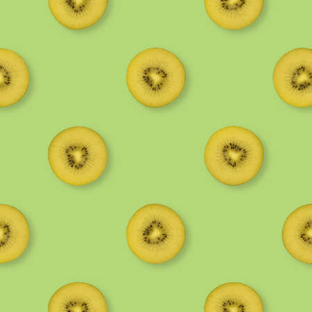 Pattern of kiwi slices. Food background. Yellow and green kiwi slices. Pattern of fresh fruits.