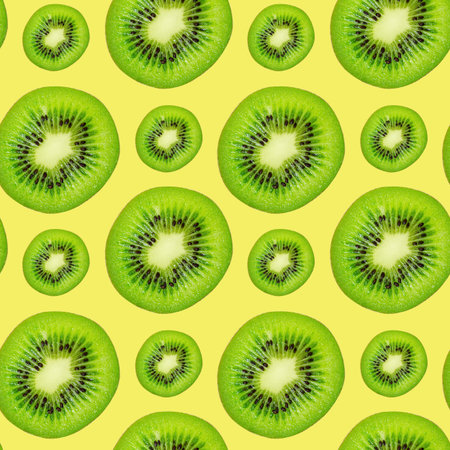 pattern of sliced kiwis isolated on yellow background for print