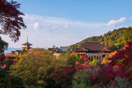 Kyoto, Japan - 25 November 2024: Kiyomizu-dera buddhist temple in autumn