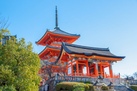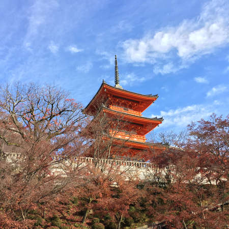 Temple kiyomizu pagoda red in Japan