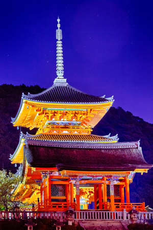 Japnese temple Kiyomizu at night, Kyoto