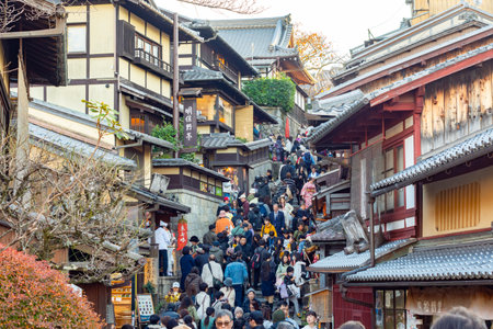 Kyoto, Japan - 25 November 2024: Crowd of tourists in Ninenzaka street leading to Kiyomizu-Dera temple
