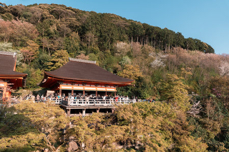 Kyoto, Japan - April 3, 2018: Kiyomizu is one of the most celebrated temples of Japan and popular landmark.
