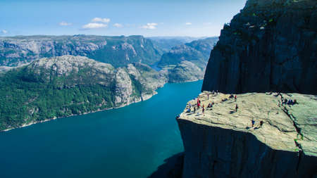 Aerial view of the cliffs and waterfalls of the Lysefjord in Norway
