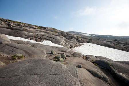 Gorge in the Norwegian mountains. Stone texture at sunset