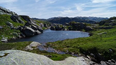 Amazing nature of the Norwegian mountains landscape. Nature of Norway. Travel and hiking concept. Scenic view of mountains lake.