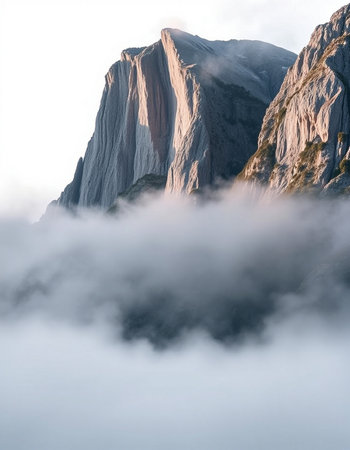 Mountains in the clouds in the Dolomites, Italy.