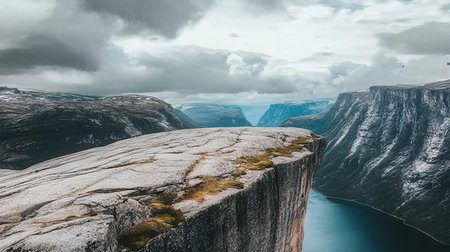 mountain landscape of norway on the approach to the troll tongue against a cloudy sky