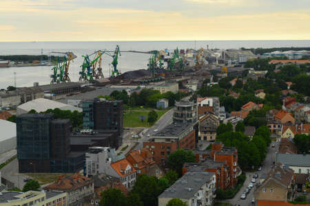 Aerial view of Klaipeda city center and port in horizon. Lithuania