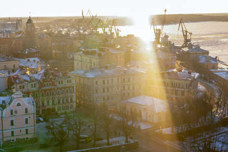 Vyborg Russian Federation 01/05/2017. View of the city of Vyborg in the sunshine long rays