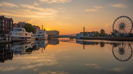 Aerial view on Motlawa river in Gdansk with amber sky wheel.