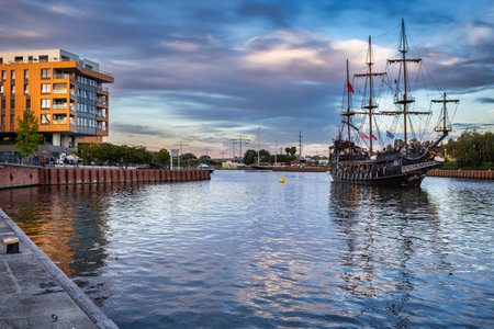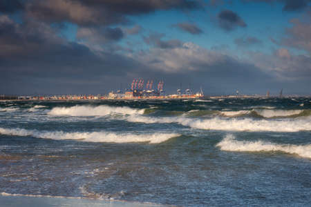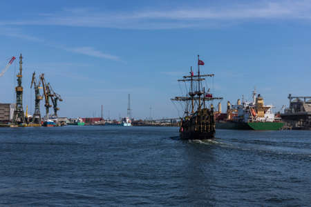 GDYNIA, POMERANIAN VOIVODESHIP / POLAND - JULY 27, 2018: View of port area in Gdynia city at Baltic Sea