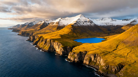 Stunning Aerial View of Faroe Islands Landscape at Summers End