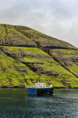 Klaksvik, Faroe Islands - June 2019: Boats in a Port in Klaksvik, the second largest town of the Faroe Islands, autonomous region of the Kingdom of Denmark