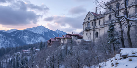 Romania in winter. Rasnov fortress and Bucegi mountain