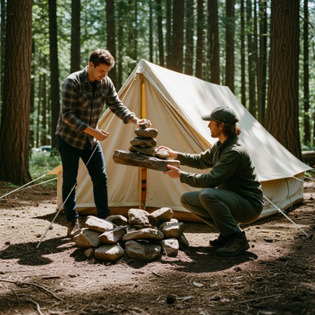 Two Friends Enjoying a Forest Camping Adventure Together