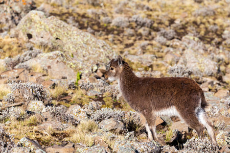 Baby of very rare Walia ibex, (Capra walie), rarest ibex in world. Only about 500 individuals survived in Simien Mountains in Northern Ethiopia, Africa