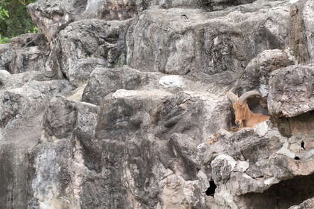 Wild goat on the rocks of La Sierra Del Torcal de Antequera National Park, Malaga, Spain