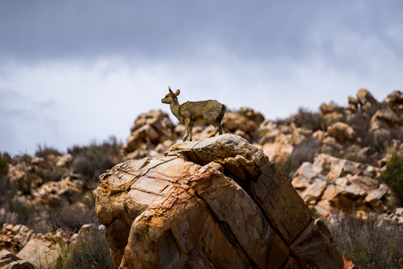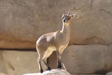 Klipspringer or Oreotragus standing on a cliff is from South Africa
