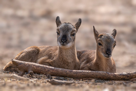 Two Klipspringers in the sand in the Kruger National Park, South Africa.