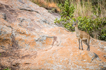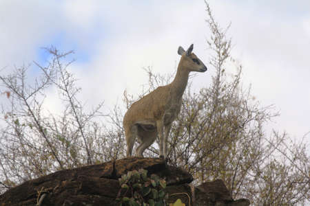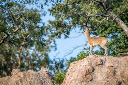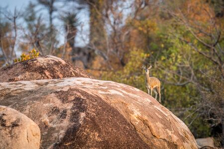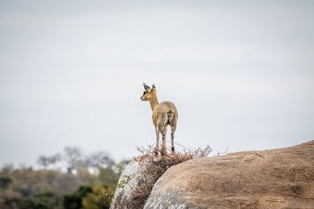 A Klipspringer on a rock in the Kruger National Park, South Africa.