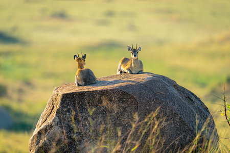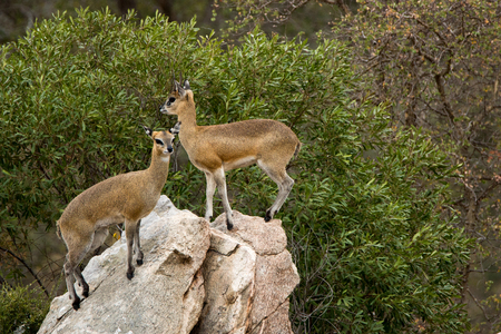 Two Klipspringer on top of a rock in the Kruger National Park, South Africa.
