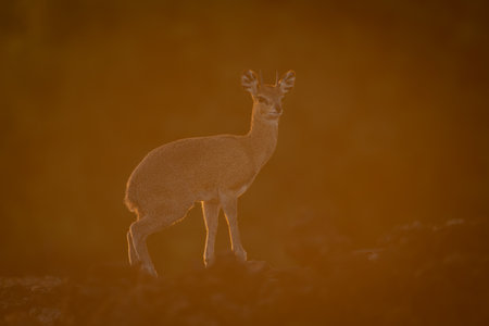 Male steenbok antelope (Raphicerus campestris) in late afternoon light, Kalahari desert, South Africa