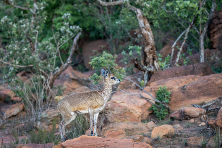 Female Klipspringer on the lookout in the Kruger National Park, South Africa.