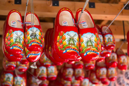 Traditional handmade Dutch wooden shoes in Zaanse Schans village near Amsterdam Netherlands