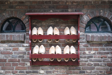 Wooden shoes hanging on the wall at Zaandijk, Netherlands