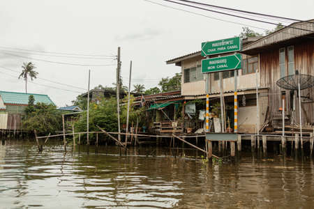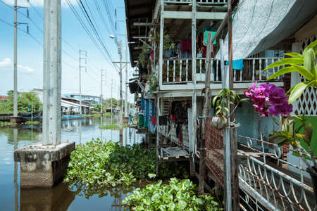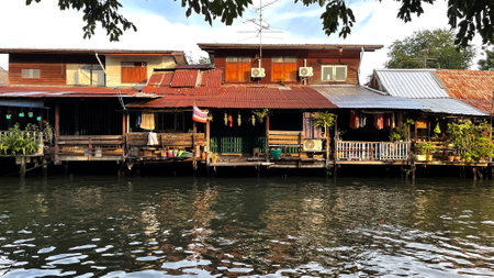 Klong Bang Luang Community,Phasi Charoen District,Bangkok,Thailand on June 26,2020:Charming old houses along Klong Bang Luang(Klong Bangkok Yai).