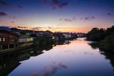 Chanthaburi river ,Classical Village near river, Chanthaburi Old Town Waterfront,Thailand