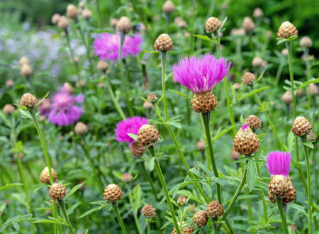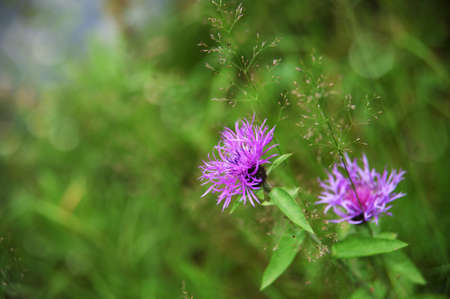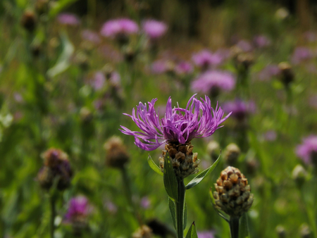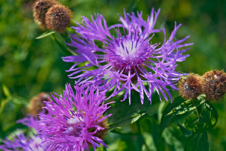 Purple flowers Cornflower (Centaurea jacea) in the summer meadow.