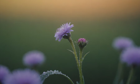 Purple cornflowers in the morning dew, natural background