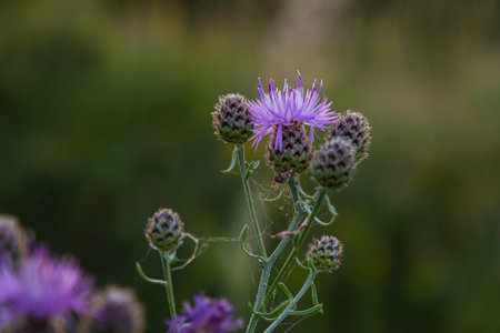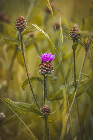 Spotted knapweed in bloom close-up view with blurred background